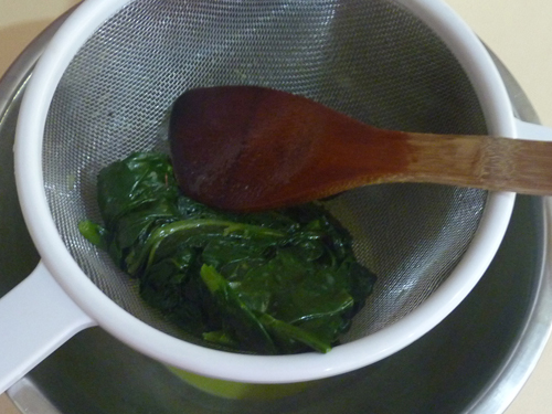 in a kitchen sieve and squeeze out the excess moisture using the back of