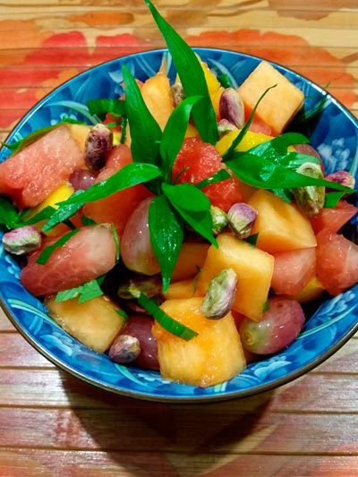 shake and refrigerate. Combine the fruit and chopped or torn herbs and